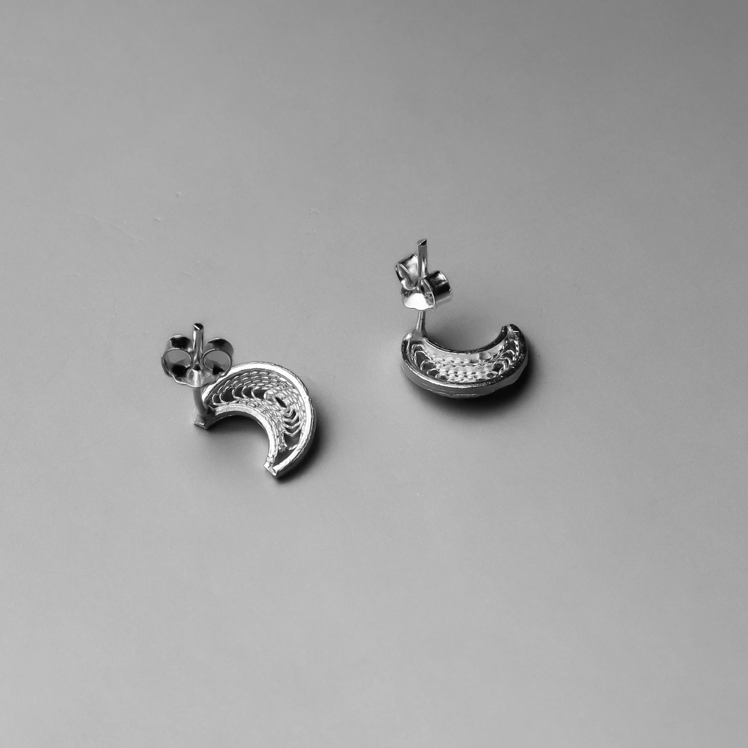 Los broqueles Velo de Horizonte combinan la delicadeza de la filigrana mexicana con un diseño ligero y armonioso elaborado en plata ley .925. Cada par de aretes es trabajado artesanalmente mediante la técnica tradicional de filigrana, donde finos hilos de plata se entrelazan cuidadosamente para crear una pieza elegante, ligera y llena de detalle.